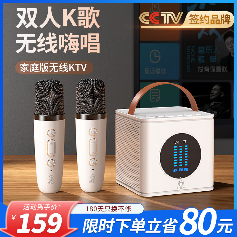 好牧人k歌麦克风音响一体家庭ktv音响套装家用娱乐卡拉ok电视点歌机无线蓝牙唱歌神器儿童带话筒户外音箱价格:199.00元!