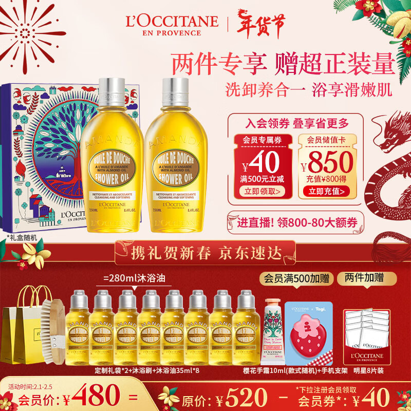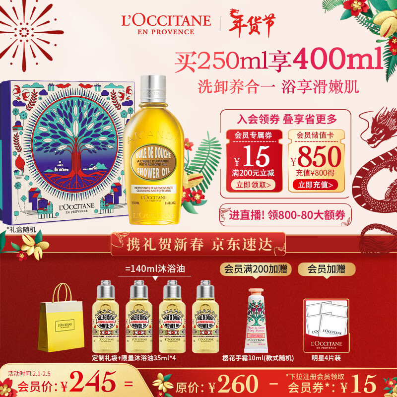 欧舒丹甜扁桃沐浴油250ml礼盒装杏仁植物留香温和清洁保湿滋润新年礼物价格:260.00元!