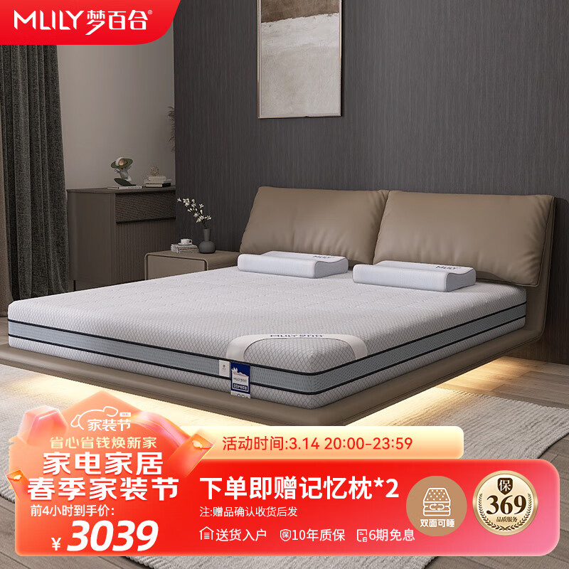 梦百合床垫 朗怡0压厚垫 软硬两用记忆棉弹簧床垫可定制 150*190*21cm价格:4199.00元!