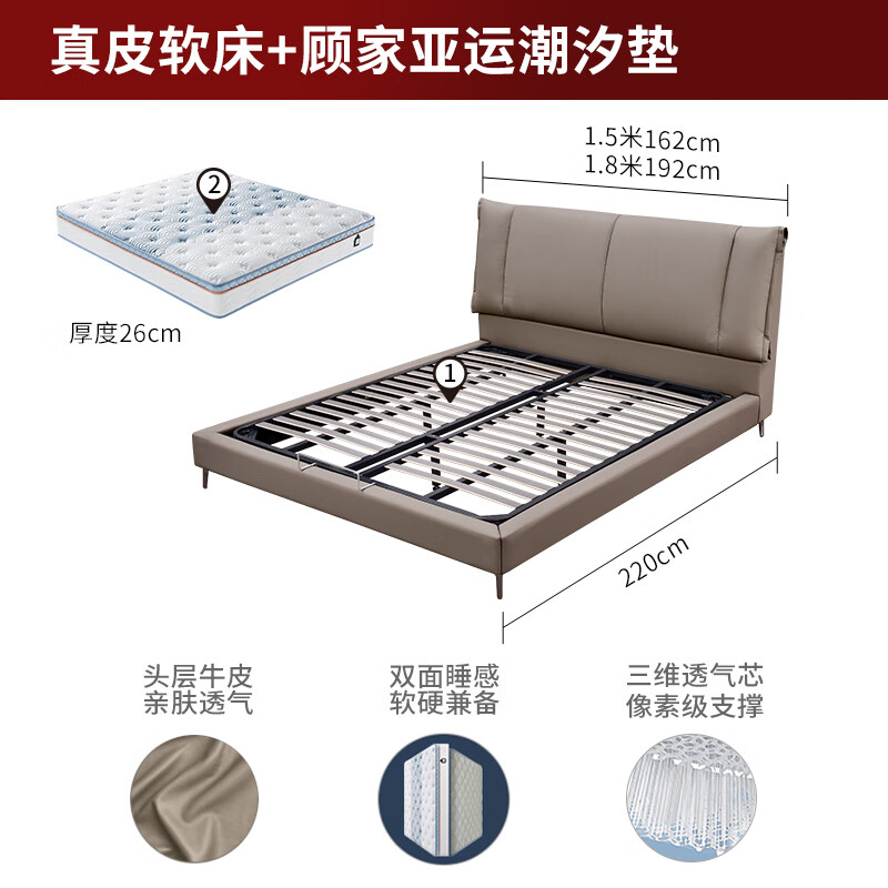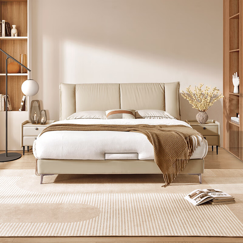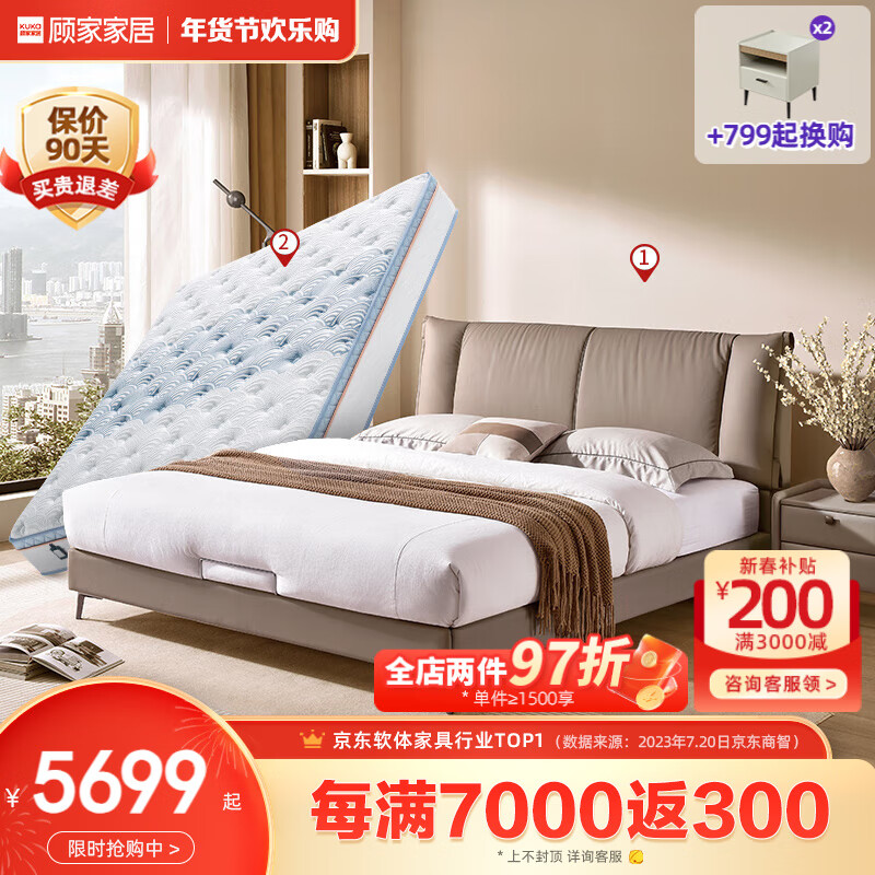 顾家家居(KUKA)现代简约皮床双人床主卧8055菲林咖+M0099C 1.8米春节后发货价格:5699.00元!