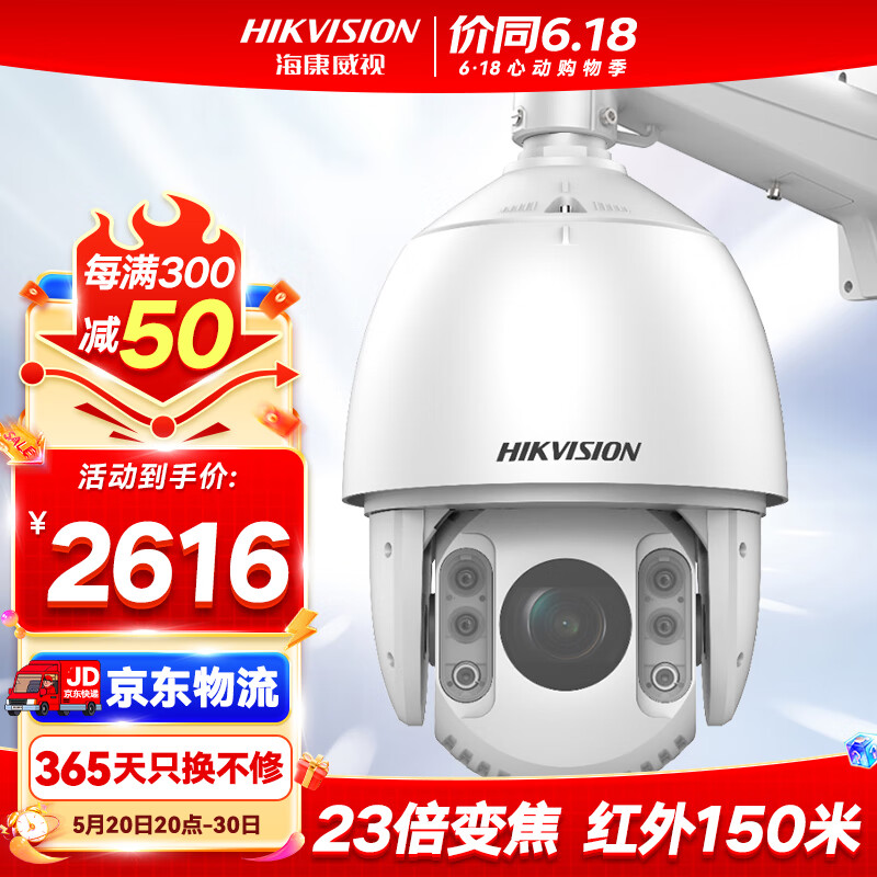 HIKVISION海康威视监控器摄像头网线供电360°云台旋转智能室外防水400万2K高清红外夜视球机DS-2DC7423IW-DE价格:3146.00元!