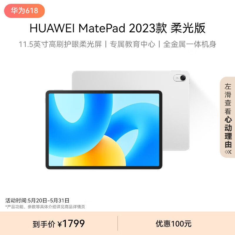 HUAWEI MatePad 2023款柔光版华为平板电脑11.5英寸120Hz护眼柔光屏学生学习娱乐平板8+128GB 冰霜银价格:1799.00元!