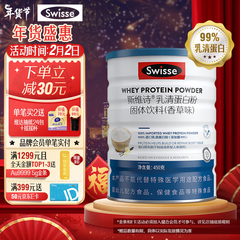 Swisse斯维诗 乳清蛋白粉香草味450g 热巴同款 99%乳清蛋白 补充蛋白质氨基酸内在保护力 全家营养 运动健身价格:259.00元!