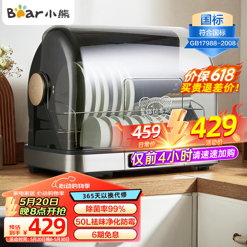 小熊(Bear)多功能消毒柜 家用台式 厨房碗筷刀架宝宝奶瓶 大容量紫外线烘干保洁柜ZTD50-A40Q5价格:439.00元!