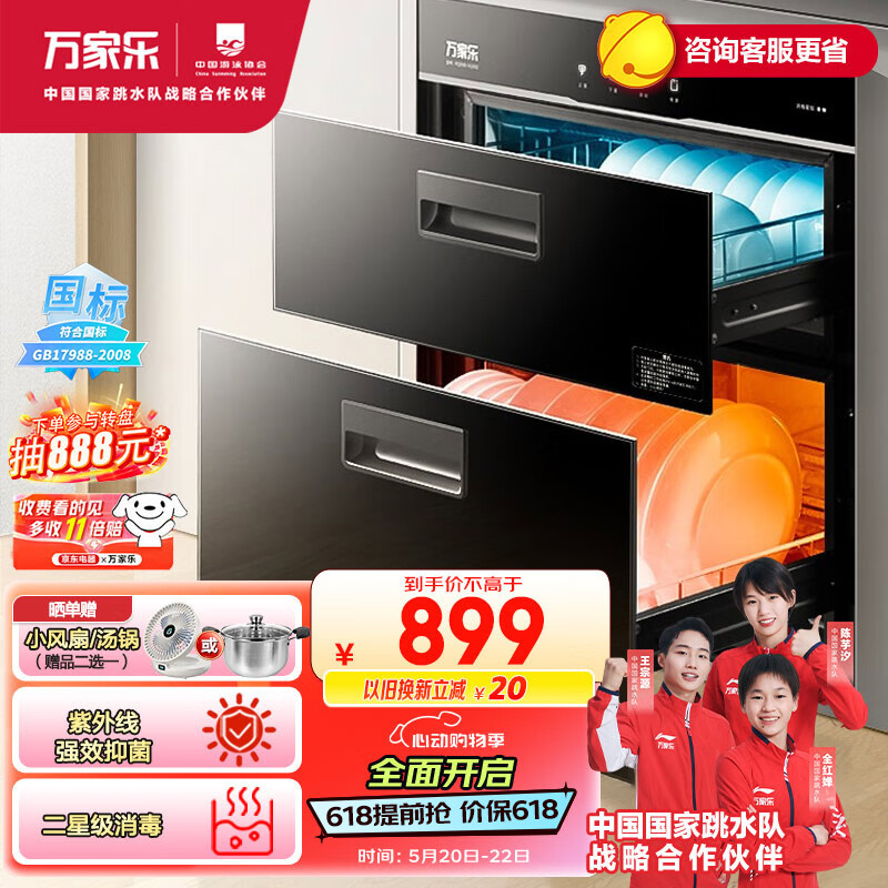 万家乐 消毒柜嵌入式 家用消毒碗柜 90L大容量二 高温消毒中温烘干碗筷餐具消毒RQD90-DQ032价格:899.00元!