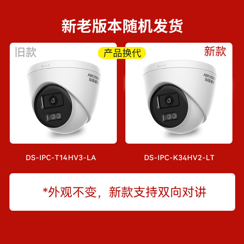 HIKVISION海康威视监控摄像头400万高清红外夜视可拾音硬盘存储学校室内半球T14HV3-LA 4MM价格:287.00元!