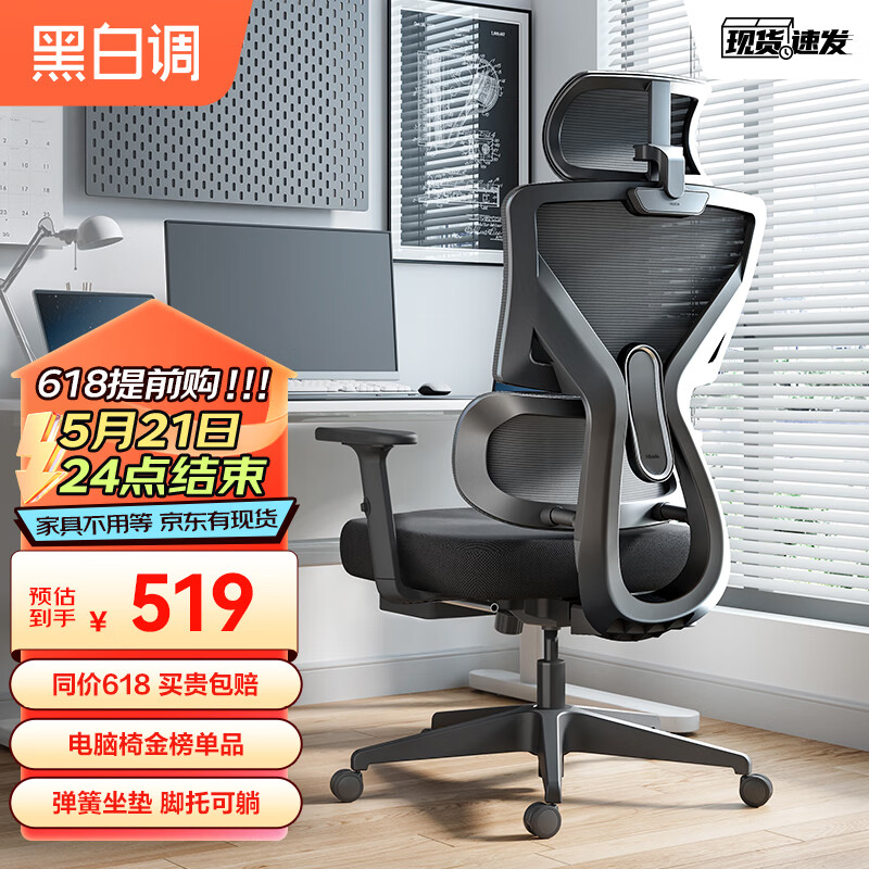 黑白调P5双背款 人体工学椅电脑椅子办公椅学习人工力学椅电竞椅高配价格:519.00元!