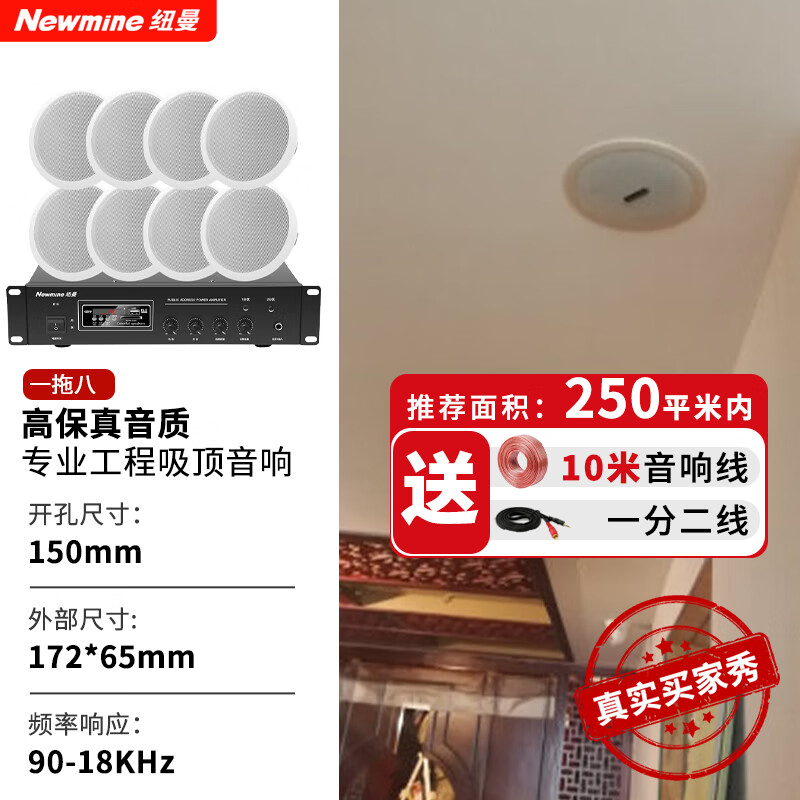 纽曼 (Newmine) D168 定压吸顶喇叭音响套装 吊顶背景音乐公共广播功放音箱系统( 一拖八)价格:699.00元!