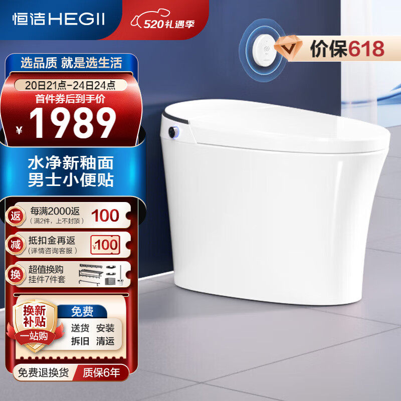 恒洁(HEGII)智能马桶Qx21 小便贴全自动加热虹吸式坐便器HC0972(坑距400mm)价格:3059.00元!