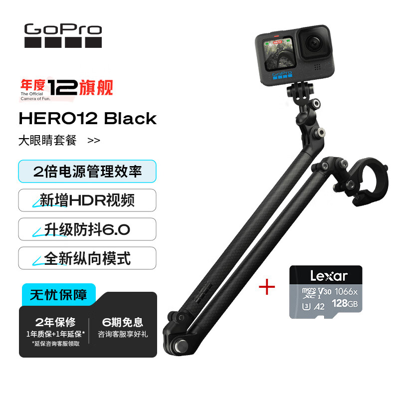 GoProHERO12 Black防抖运动相机 户外出行潜水防水相机 128G内存卡+Boom支臂+Bar固定座价格:3615.00元!