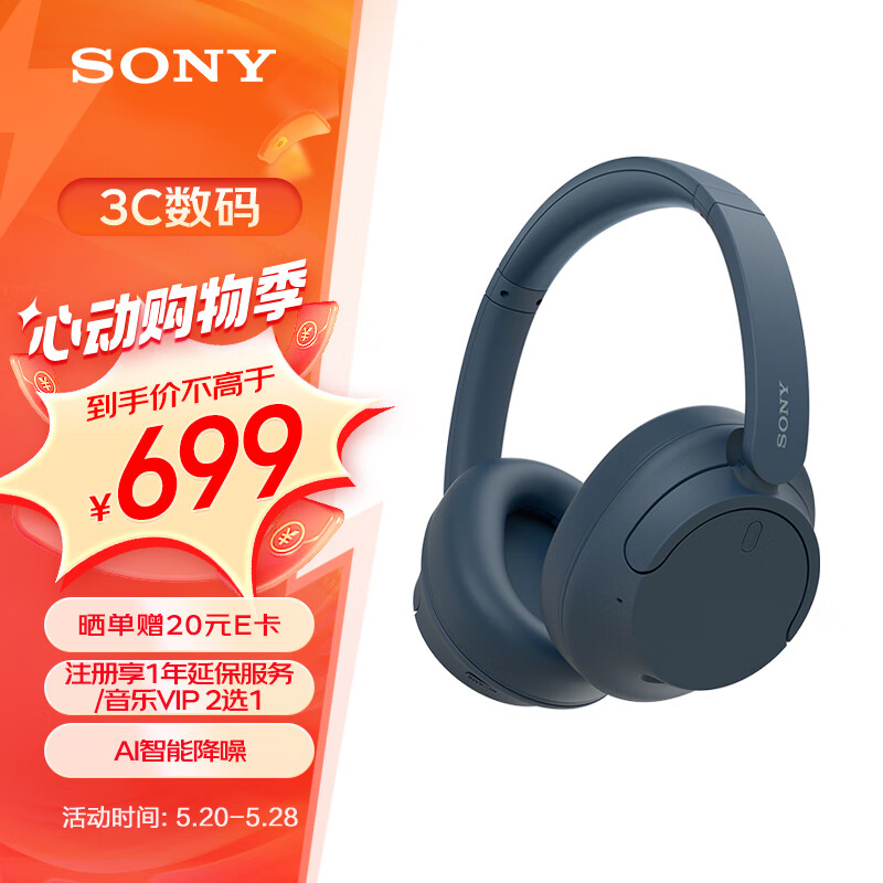 索尼(SONY)WH-CH720N 无线降噪立体声耳机 蓝色价格:699.00元!