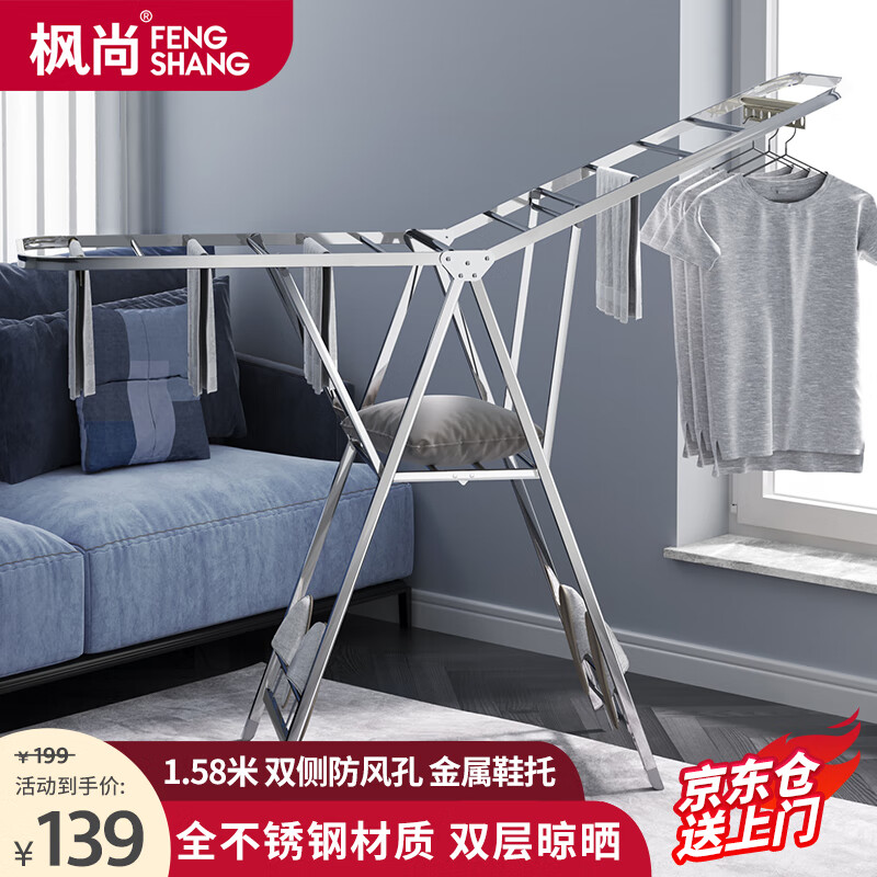 枫尚 晾衣架落地 可折叠衣架室内阳台晾衣杆晒衣架简易不锈钢晒被子价格:159.00元!
