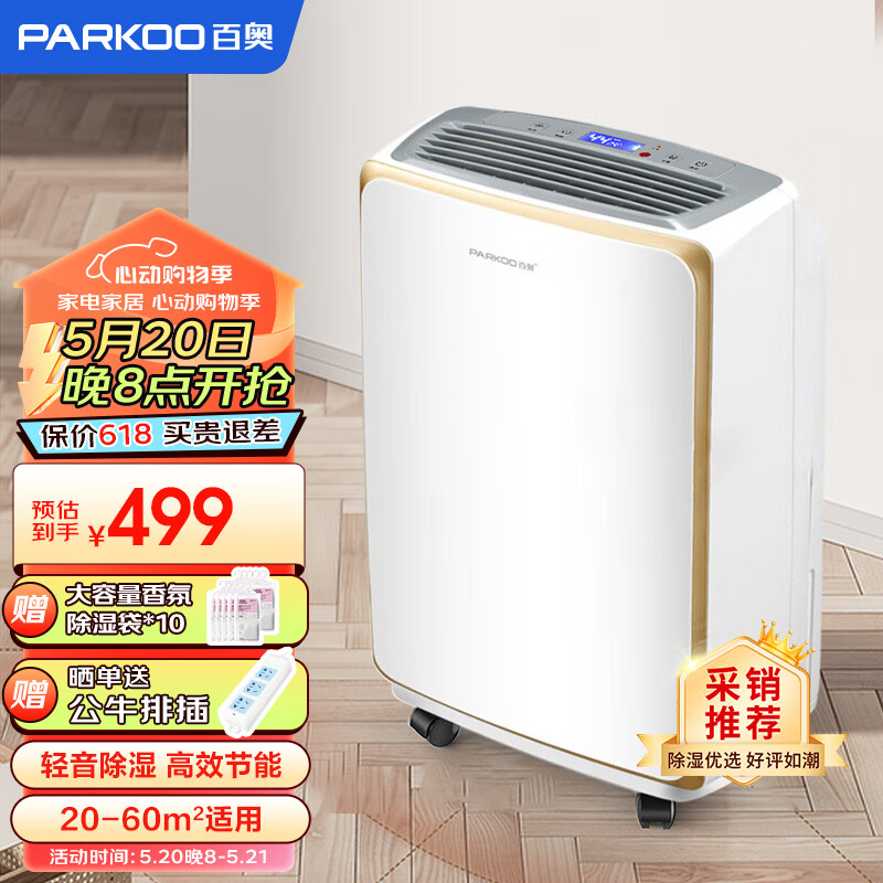 百奥(PARKOO)除湿机/抽湿机/干衣 除湿量12升/天 家用低音除湿器地下室衣帽间干衣HD165A价格:599.00元!