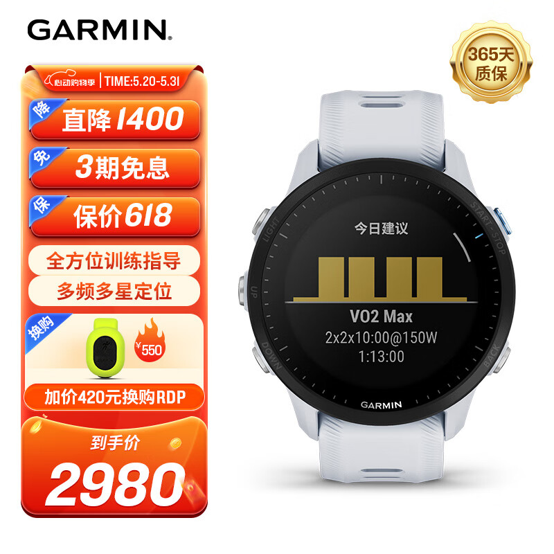 佳明(GARMIN)Forerunner955智能户外运动手表心率跑步骑行血氧音乐支付 白色价格:3000.00元!