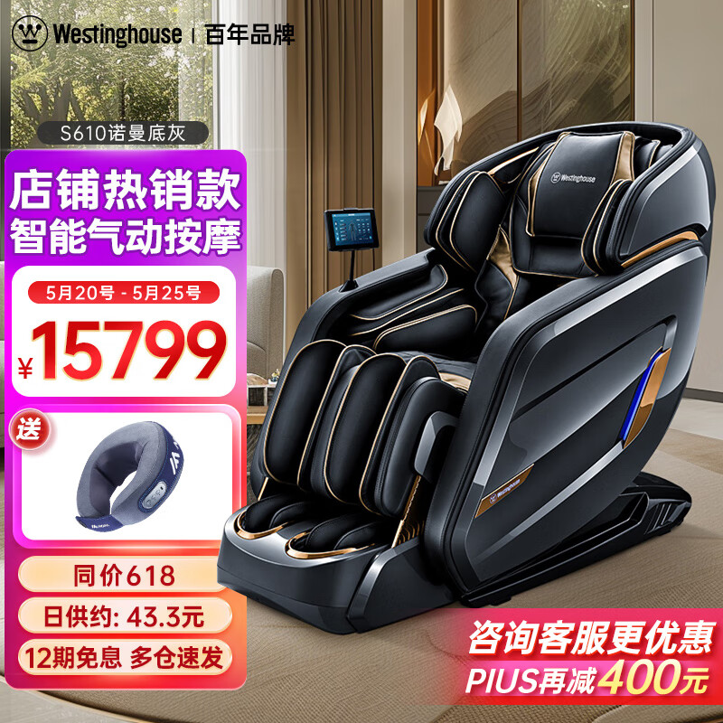 西屋(Westinghouse) S610全自动3D按摩椅家用按摩椅太空舱2024全身按摩电动按摩沙发按摩躺椅送家人礼物 诺曼底灰价格:15799.00元!