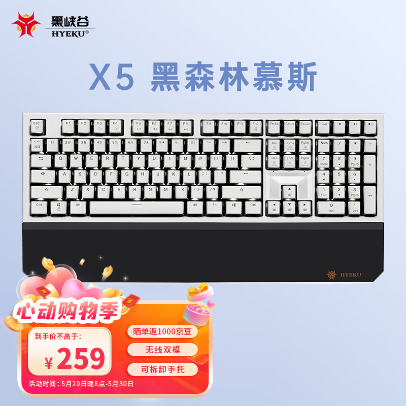 黑峡谷(Hyeku)X5 有线/无线2.4G双模机械键盘 108键PBT键帽 凯华BOX新轴 黑森林慕斯 流沙金轴 附卡扣腕托价格:279.00元!