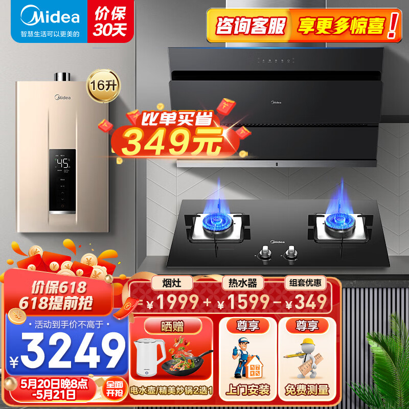 美的(Midea)侧吸抽油烟机灶具烟灶多件套装燃气热水器家用烟灶燃热厨房三件套JN205+Q217B+16NT1S天然气价格:3249.00元!