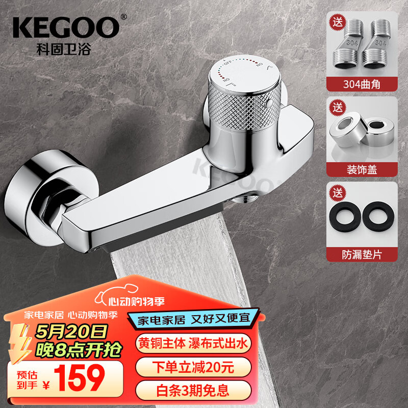 科固(KEGOO)三联淋浴水龙头黄铜混水阀套装 浴室花洒冷热开关瀑布下出水K3011价格:179.00元!