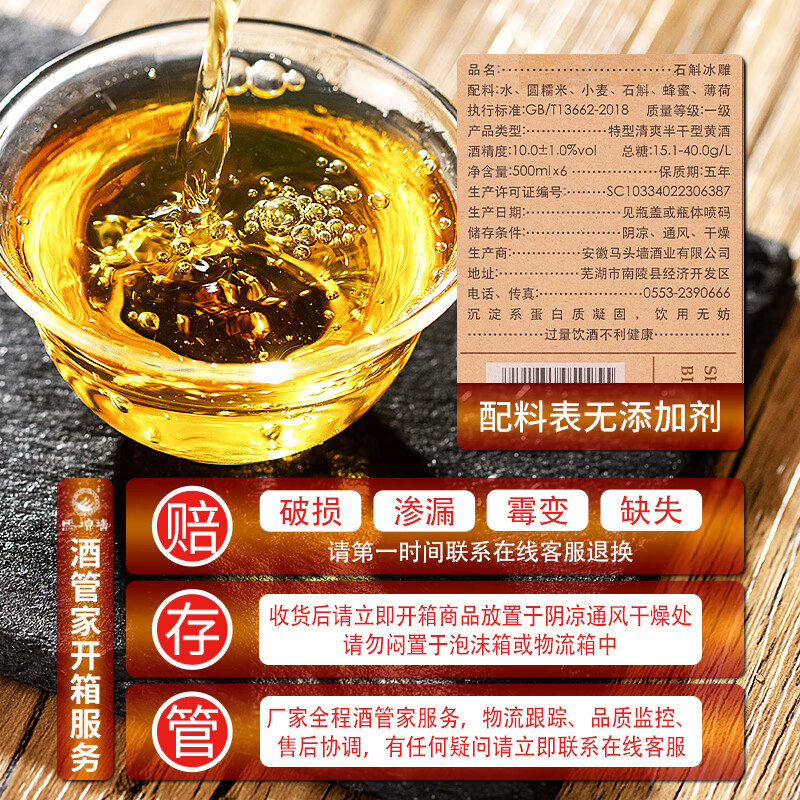 马头墙黄酒无焦糖色石斛冰雕手工纯粮花雕酒养生黄酒特型半干型整箱礼盒价格:338.00元!