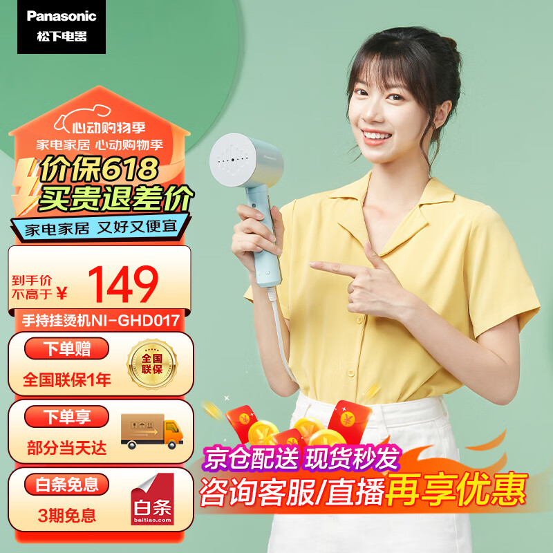 松下(Panasonic)挂烫机家用 熨斗 蒸汽挂烫机 便携 手持挂烫机 电熨斗 NI-GHD017 绿色价格:149.00元!