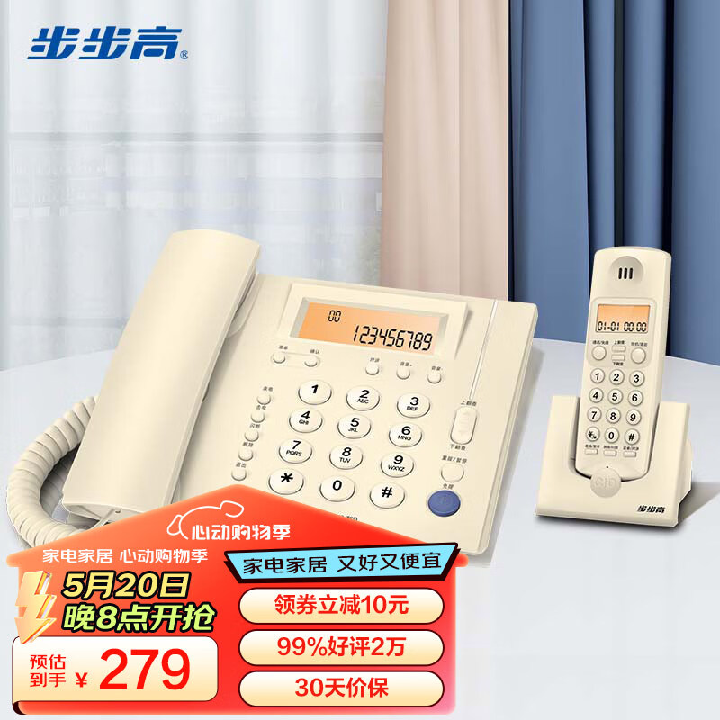 步步高(BBK)无绳电话机 无线座机 子母机 办公家用 内部对讲 远距离信号 W263玉白 一拖一价格:289.00元!