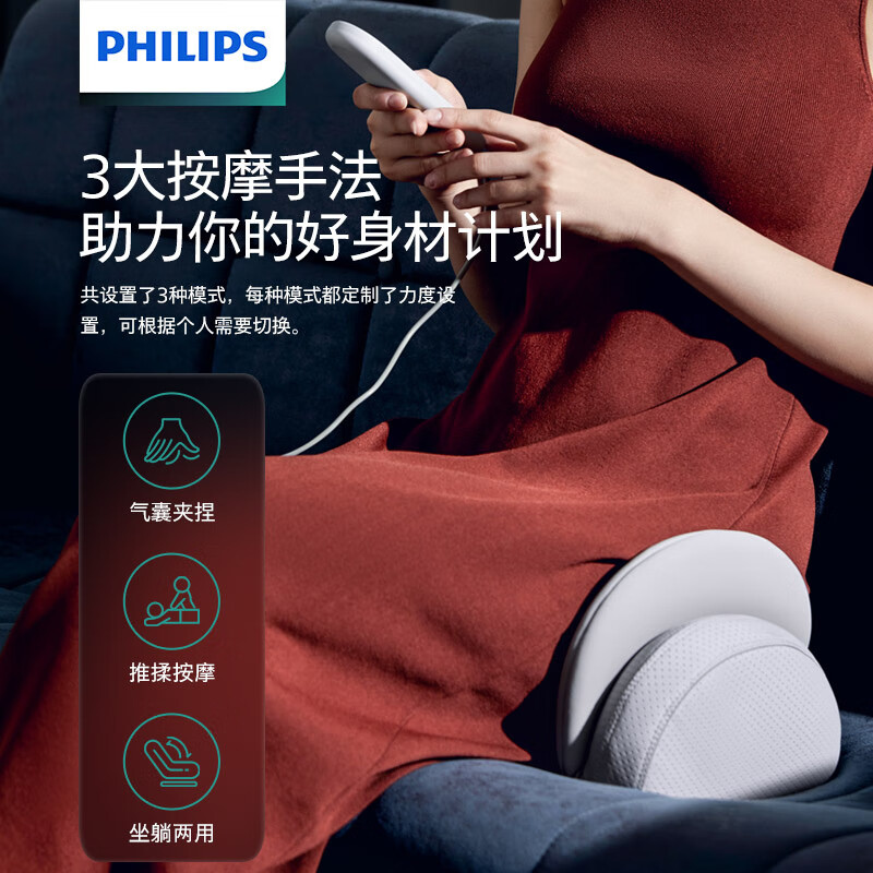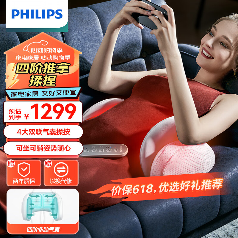 飞利浦(PHILIPS)腰部按摩器 腰椎臀热敷按摩仪背腰腿推拿揉捏电动腰背按摩仪器坐躺按摩靠垫办公送礼礼品7101B价格:1949.00元!