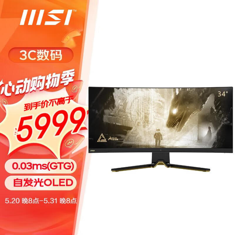 微星(MSI)34英寸 准4K 量子点 OLED 曲面屏 175Hz 0.03ms(GTG) 原生10Bit 电竞显示器 MEG 342C QD-OLED价格:7999.00元!