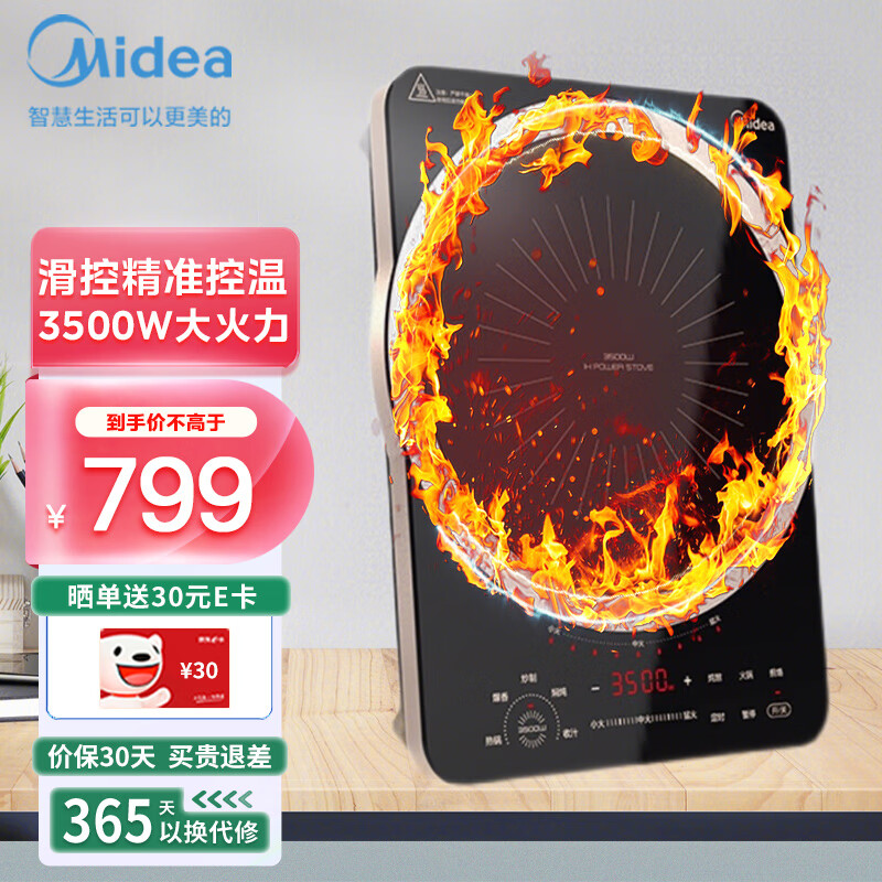 美的(Midea)电磁炉 家用3500W大火力十档滑控 IH立体匀火电磁灶4D防水 双风机散热 PH3501价格:799.00元!