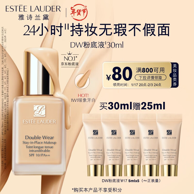 雅诗兰黛DW持妆粉底液17#象牙白(1W1)30ml遮瑕持久化妆品生日礼物送女友价格:430.00元!