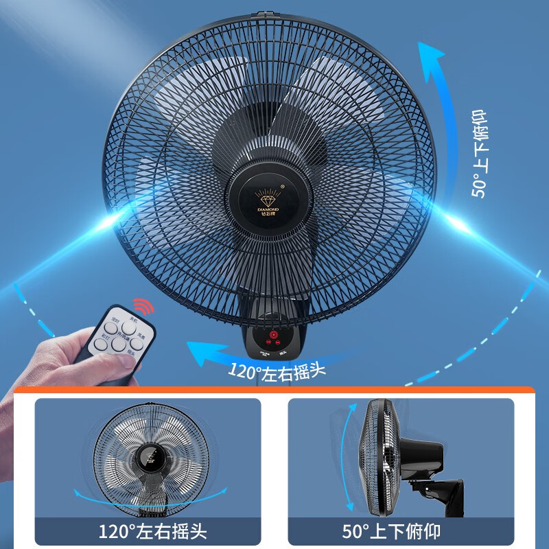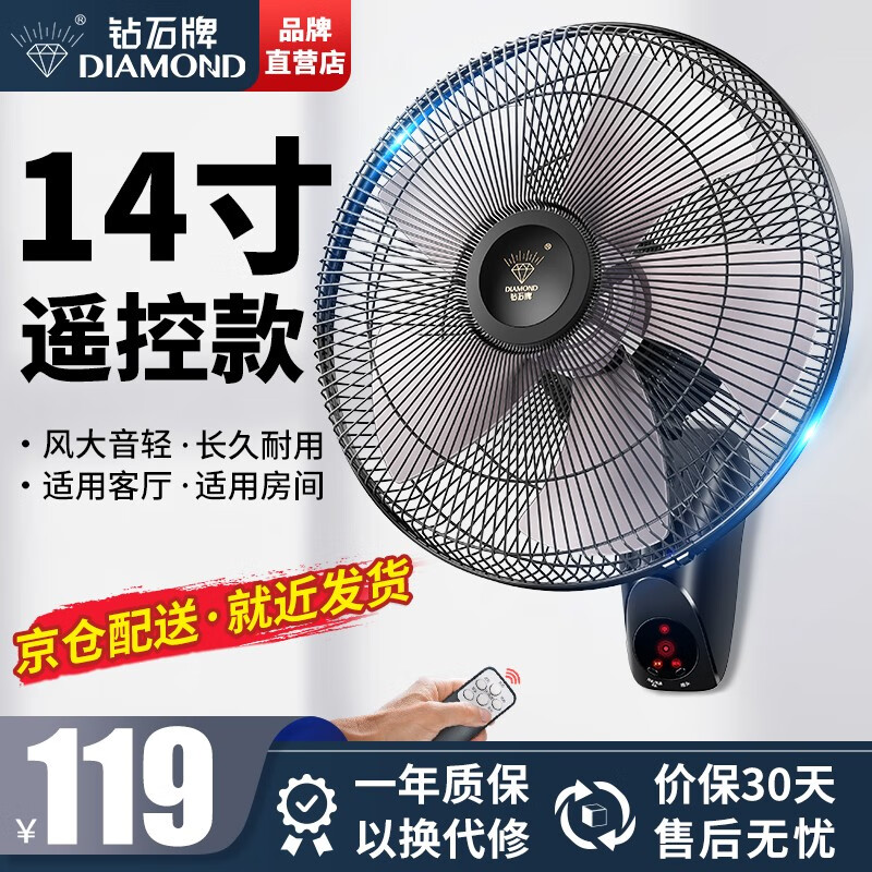 钻石牌(DIAMOND) 壁扇壁挂风扇挂壁式电风扇家用遥控墙壁摇头挂扇挂式工业电扇大风力宿舍餐厅 FB-35K-1五叶遥控(14寸)价格:139.00元!