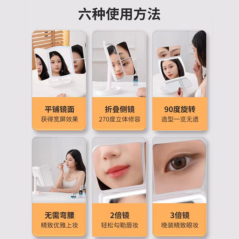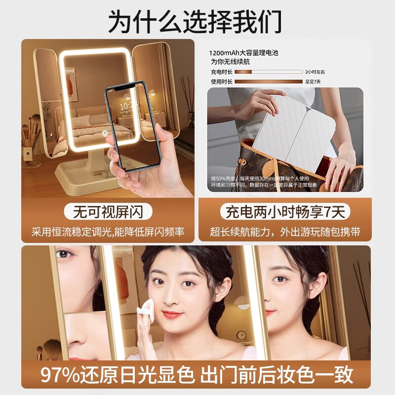 倍呵倍呵led高清化妆镜带灯智能卧室桌面梳妆折叠镜子 生日礼物送女生女士 【低配款】 母亲节礼物实用送妈妈高档婆婆-520情人节礼物女友价格:129.00元!