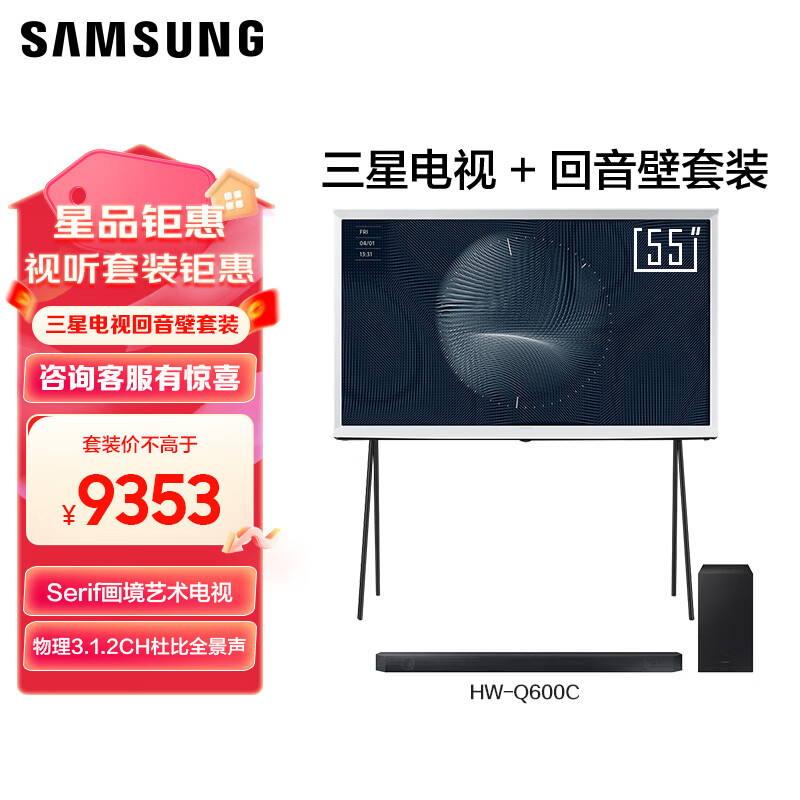 三星(SAMSUNG)55LS01C 55英寸 Serif画境艺术电视 超薄4K哑光屏显120Hz +HW-Q600C/XZ音箱套装价格:9353.00元!