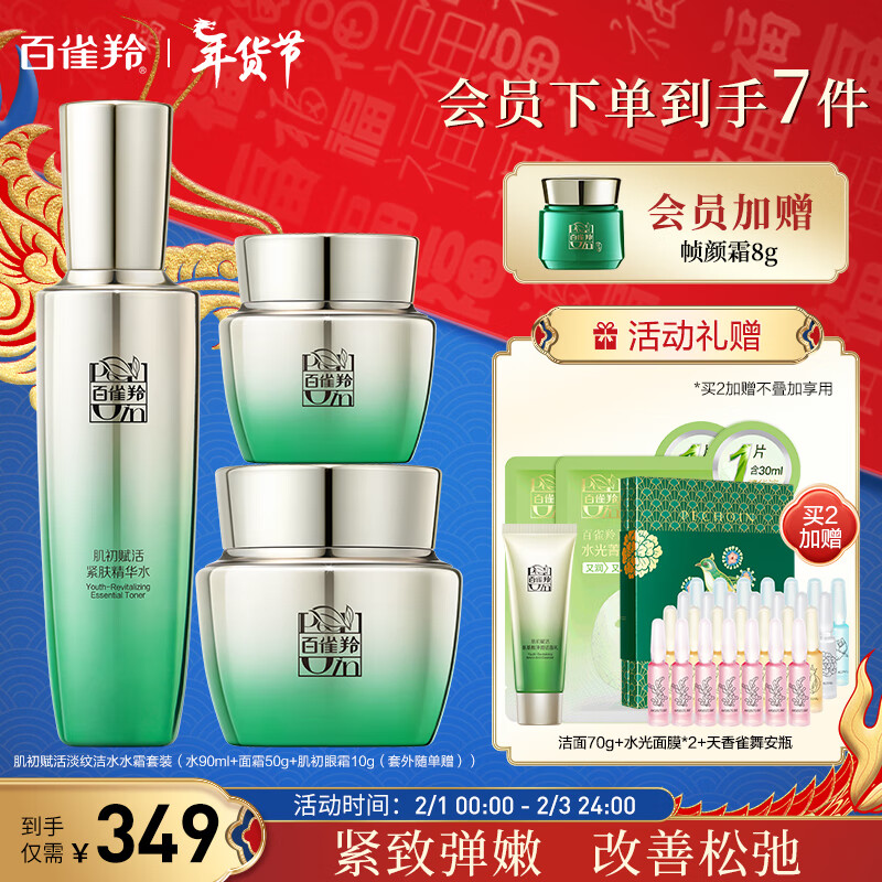 百雀羚(PECHOIN)护肤套装肌初赋活(水90ml+霜50g)抗皱紧致淡纹新年礼物价格:349.00元!