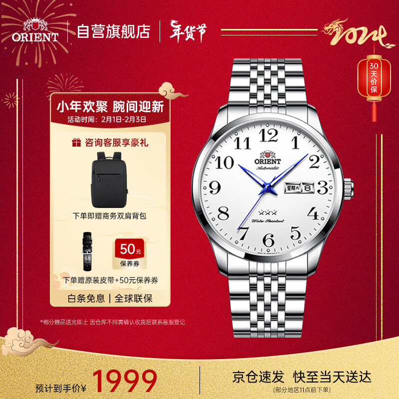 东方(ORIENT)双狮手表全自动机械表男 商务夜光男士腕表RA-AB0002S-价格:2099.00元!