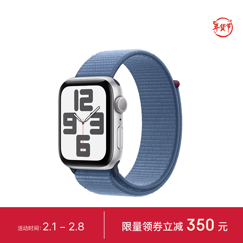 Apple/苹果 Watch SE 2023款智能手表GPS款44毫米银色铝金属表壳凛蓝色回环式运动型表带 MREF3CH/A价格:2049.00元!