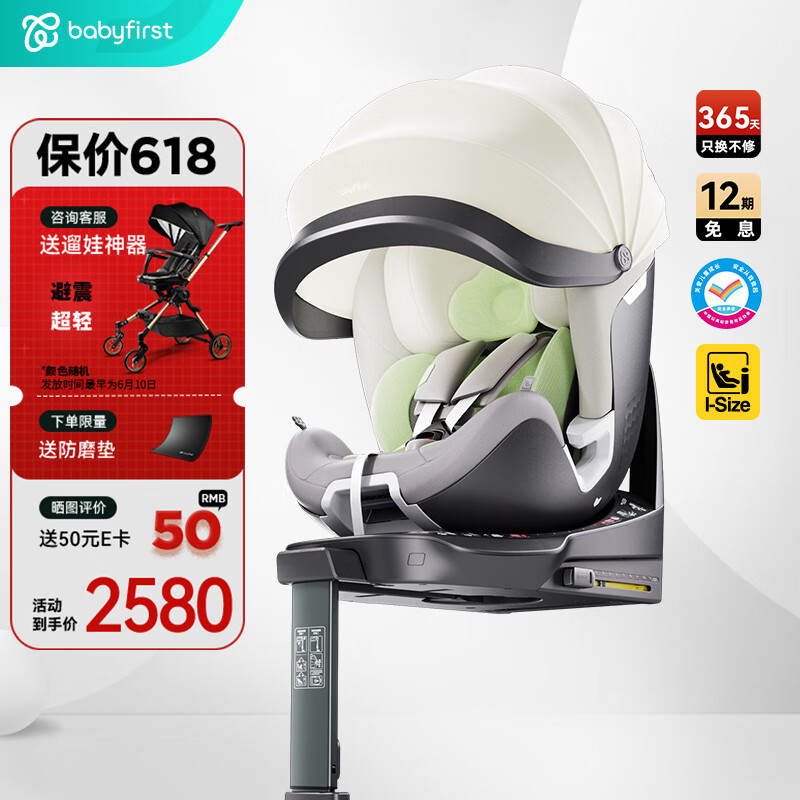 宝贝(Babyfirst)灵悦Pro婴儿童座椅汽车用0-7岁宝宝车载360度旋转椰奶白R155B价格:3380.00元!
