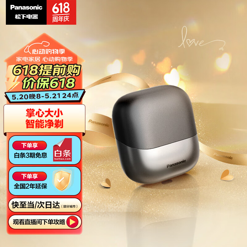 松下(Panasonic)小方盒剃须刀电动便携往复式刮胡刀磁悬浮马达进口三刀头生日礼物男士520情人节送男友老公CM30黑价格:639.00元!