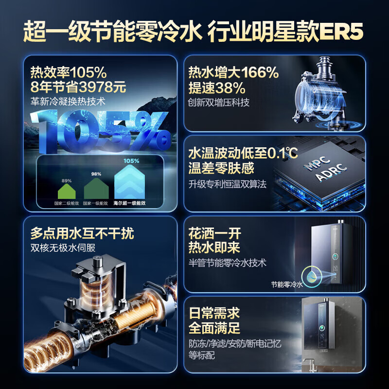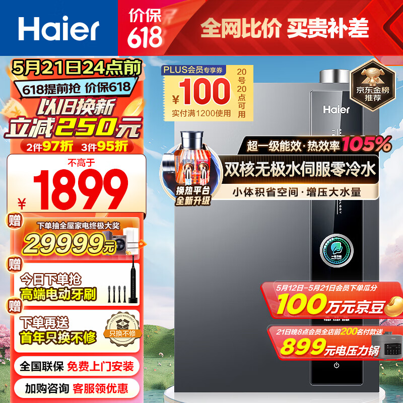 海尔(Haier)16升零冷水燃气热水器天然气超一级能效水伺服恒温增压大水量JSLQ27-16ER5DLRCU1【以旧换新】价格:2199.00元!