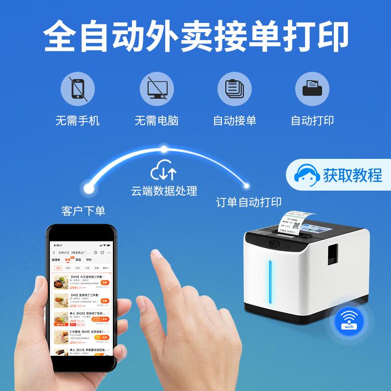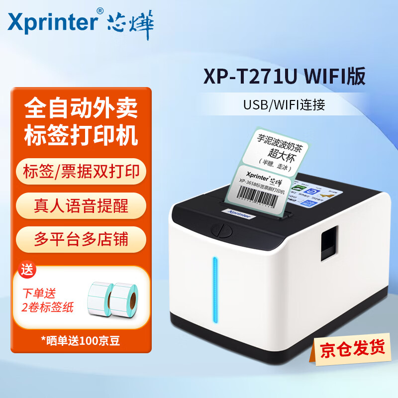 芯烨(XINYE)XP-T271U外卖全自动接单标签打印机 热敏不干胶贴纸条码机 餐饮奶茶店美团饿了么无线wifi款价格:445.00元!