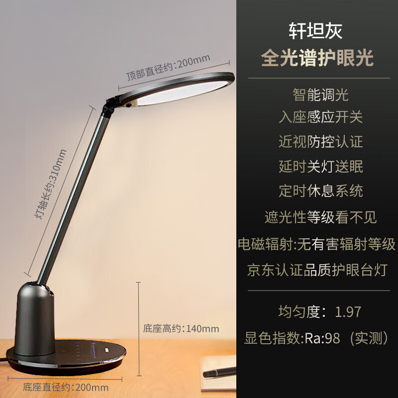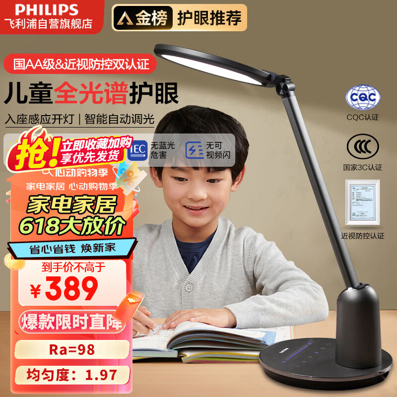 飞利浦(PHILIPS)护眼台灯全光谱儿童学习台灯无蓝光学生阅读卧室灯轩坦灰价格:699.00元!