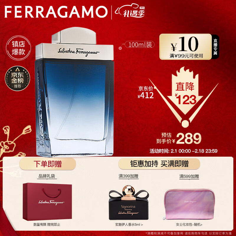 菲拉格慕(Ferragamo)蓝色经典淡香水100ml 男士香水生日节日情人节礼物送男友淡香持久价格:289.00元!