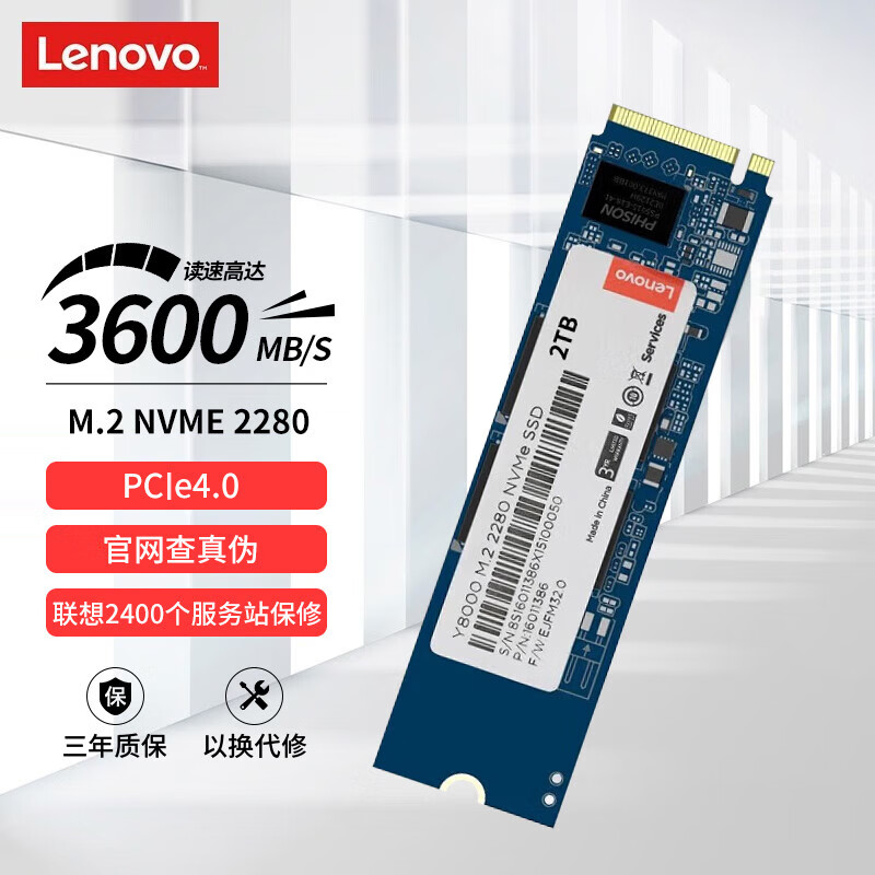 联想(Lenovo)2TB SSD固态硬盘M.2接口(NVMe协议)PCIe4.0 x4 联保Y8000系列价格:1279.00元!