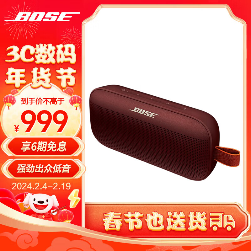 Bose Soundlink Flex 小巨弹蓝牙扬声器户外防水音箱音箱无线便携式露营音箱 酒红色价格:929.00元!