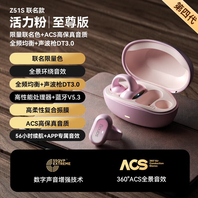 SANAG塞那 Z51【欧阳娜娜代言】蓝牙耳机耳夹式骨传导概念不入耳运动音乐降噪长续航通用礼物 活力粉价格:349.00元!