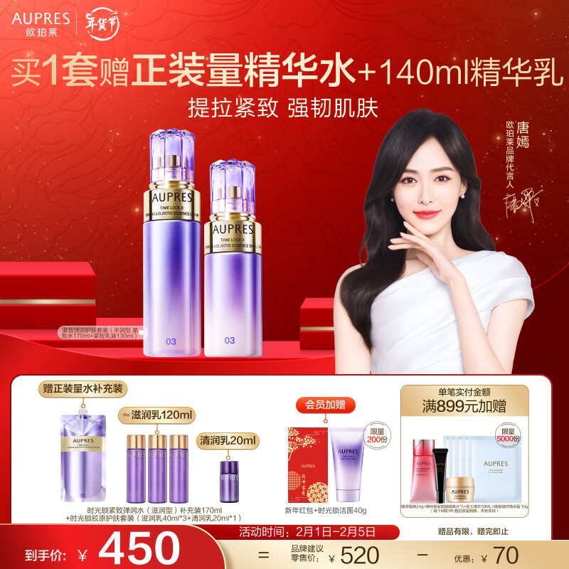 欧珀莱(AUPRES)【唐嫣同款 】第五代全新时光锁水乳护肤品套装礼盒 丰润型价格:510.00元!
