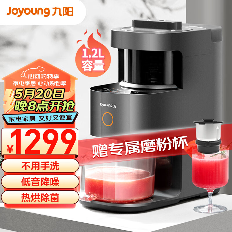 九阳(Joyoung)免手洗破壁机 破壁机家用 低噪音高端多功能热烘除菌榨汁机豆浆机Y3【天空系列】价格:1299.00元!