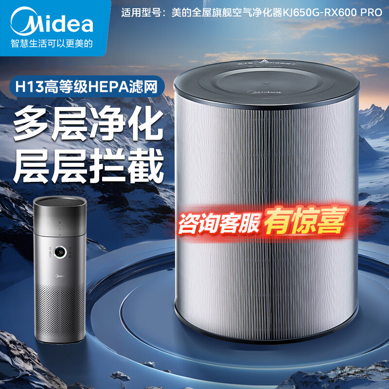 美的(Midea) 空气净化器滤芯除甲醛除雾霾颗粒物净化器RX600PRO原装滤网FC-60XH1Pro【配件】价格:499.00元!