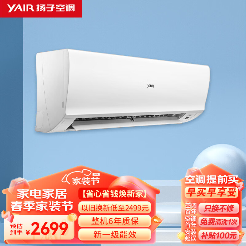 扬子 2匹 新一级能效 变频冷暖 独立除湿 以旧换新 制热取暖 壁挂式客厅卧室挂机 KFR-50GW/08051fB1价格:2799.00元!