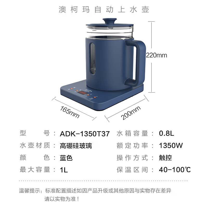 澳柯玛(AUCMA)自动上水恒温电热水壶玻璃底部上水免开盖烧水壶煮茶壶全自动电水壶ADK-1350T37(蓝色)价格:141.00元!