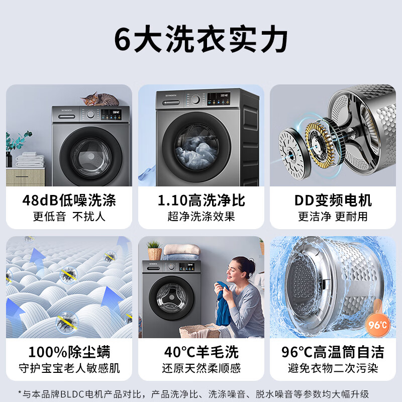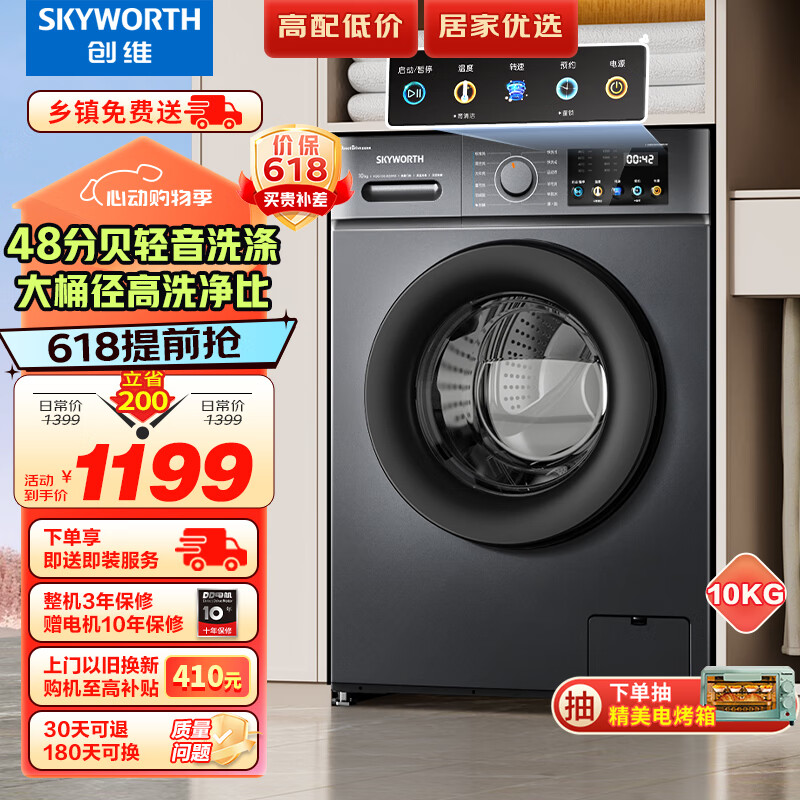 创维(SKYWORTH) 10公斤滚筒洗衣机全自动 变频低噪 大容量家用 超薄可嵌入 可速洗XQG100-B33RD(E)价格:1299.00元!